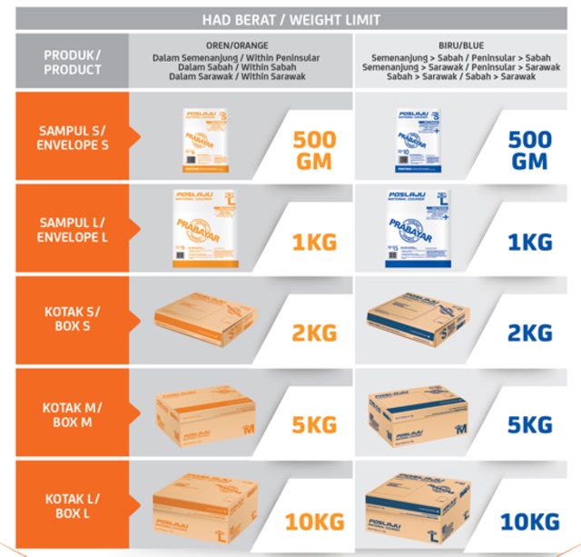 Harga Pos Laju 2022 Kadar Kos Postage Mengikut Berat